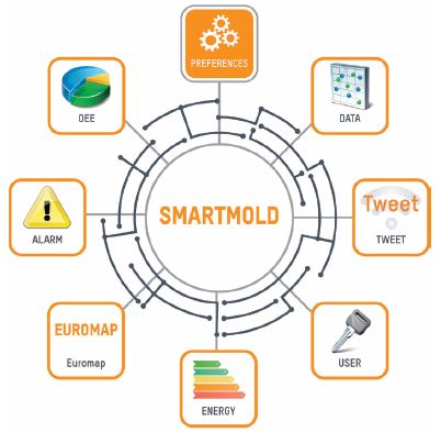 ◆ 数据节点:通过Euromap,注塑机可以与MES 系统或云端应用连接,实现对注塑机数据的汇集、传输,并应用于智能优化等。