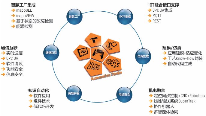 (3)机电融合:通过软件,如PLCopen 的标准化,Part IV 协同运动控制,人们可以针对定位同步控制、CNC 和机器人进行统一编程,进而使得机器与产线得以无缝的耦合。. 知识自动化:在长期开发中所积累的经验、工艺Know-How 可以通过软件形式封装,并被复用,以及低代码开发模式使得系统更为高效的响应市场的变化。